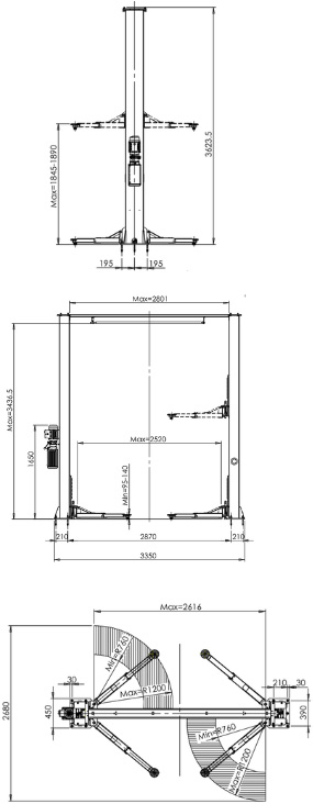 ลิฟท์ยกรถ 2 เสาคานบน ขนาด 4.0 ตัน รุ่น ST-4.0T